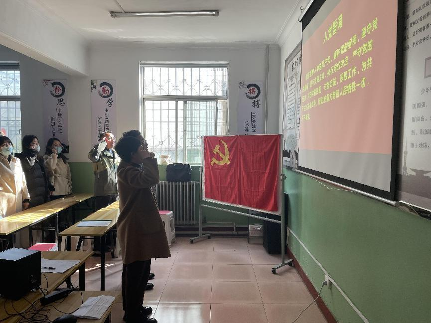 晉煤機關社區(qū)黨總支書記何姍姍同志帶領全體黨員重溫入黨誓詞。“我志愿加入中國共產黨,擁護黨的綱領,遵守黨的章程…”,在場全體黨員舉起右拳,面對黨旗,莊嚴宣誓,誓言鏗鏘有力,彰顯了責任與擔當。